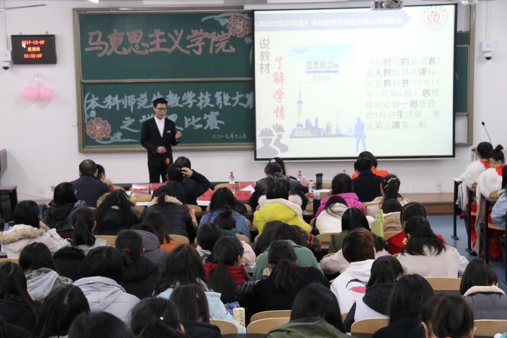 为加强师范生的教学技能训练,培养师范生的教学技能和创新能力,提高师范生的综合能力,进一步推进学院学风建设和导师制建设,2017年12月7日14时30分,2138cn太阳集团古天乐特于砺志楼2409教室举办教学技能大赛之说课比赛的决赛。本次活动特邀2138cn太阳集团古天乐院长陈洪、党委书记刘军、副院长况明安、党委副书记姜土生担任嘉宾,邀请吴涯、郑瑜、王建斌、王开莉四位老师担任评委。2138cn太阳集团古天乐2017级全体学生参与。