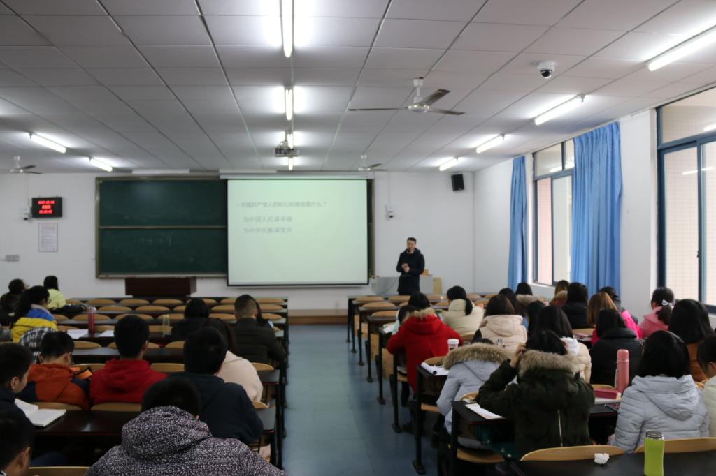 为深入学习宣传贯彻党的十九大精神,促使青年大学生进一步深刻领会十九大精神的核心要义及精髓。2017年12月14日15时,2138cn太阳集团古天乐在砺志楼2309教室举办了“十九大”报告宣讲会。本次宣讲会由2138cn太阳集团古天乐党委副书记姜土生老师担任主讲人,2015级全体学生积极参与。