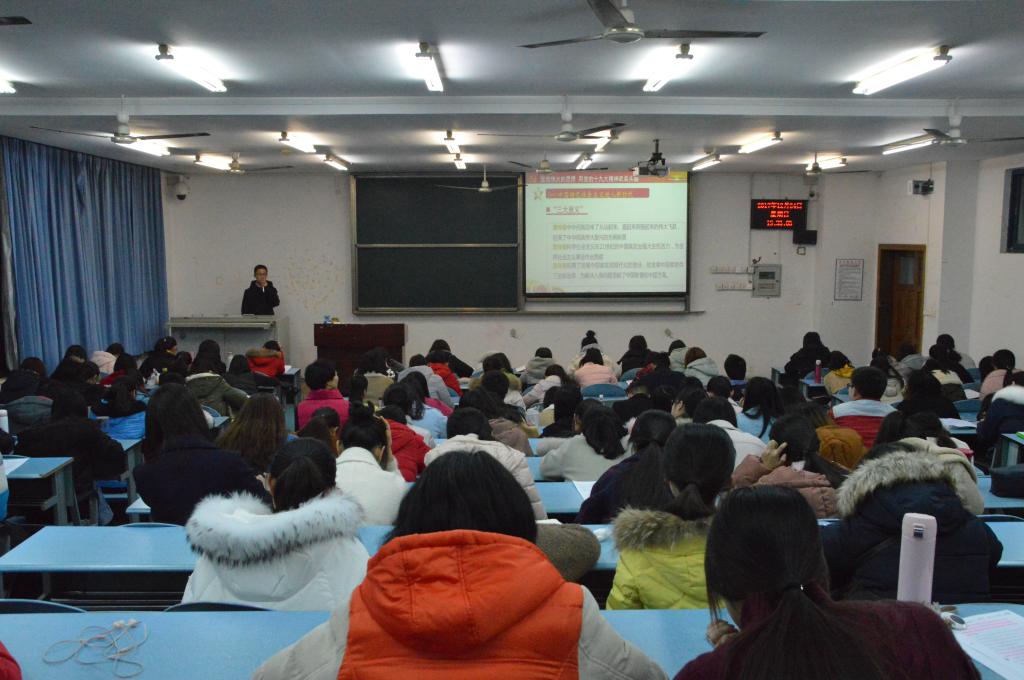 为加深当代大学生对十九大精神的理解,贯彻学习十九大理论知识,提高学生思想素质和理想信念,2017年12月24日19时30分,2138cn太阳集团古天乐特于弘德楼5304教室举办十九大宣讲会。本次活动由2138cn太阳集团古天乐团总支书记马小又老师担任主持人,2015级全体同学积极参与。