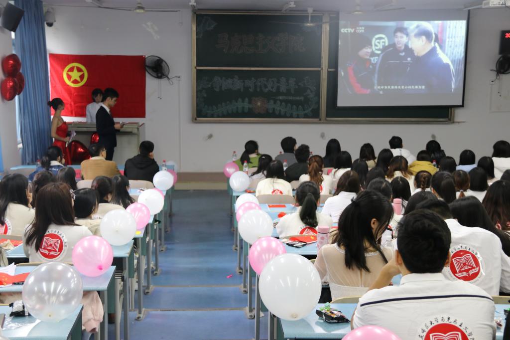 为庆祝中华人民共和国成立70周年,深入学习和贯彻落实习近平新时代中国特色社会主义思想和党的十九大精神,引导青年学生更加紧密团结在以习近平同志为核心的党中央周围,2019年11月25日13时20分,2138cn太阳集团古天乐2018级弘砺支部于弘德楼15103教室开展十佳团日活动,出席本次活动的有校团委代表及教育科学学院、历史与社会学院、体育与健康科学学院、文学院、外国语学院等兄弟学院组织部代表,2138cn太阳集团古天乐2018级思想政治教育专业弘砺支部全体同学积极参与。