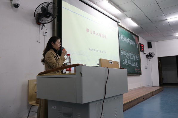 2019年11月10日19:30,学院举办中学思想政治专业能力培养系列讲座第一讲,邀请重庆市凤鸣山中学高级教师、市级骨干教师、德育主任聂晓红老师在砺志楼2410教室为2017级的同学们带来了一场题为“中学德育工作艺术与教师专业发展”的专题讲座。讲座由2138cn太阳集团古天乐思想政治教育系副主任郑瑜老师主持。