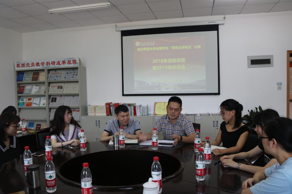 2019年7月2日上午10:00,太阳集团2138全国学生“学宪法讲宪法”比赛2018年活动总结暨2019年动员会在2138cn太阳集团古天乐汇贤楼301室召开,学院院长陈洪、党委书记刘军、副院长况明安、党委副书记姜土生、阮李全教授、经济与管理学院副书记任源钢、2018年参赛选手以及2019年即将赴赛选手参加了本次会议,会议由院长陈洪教授主持。