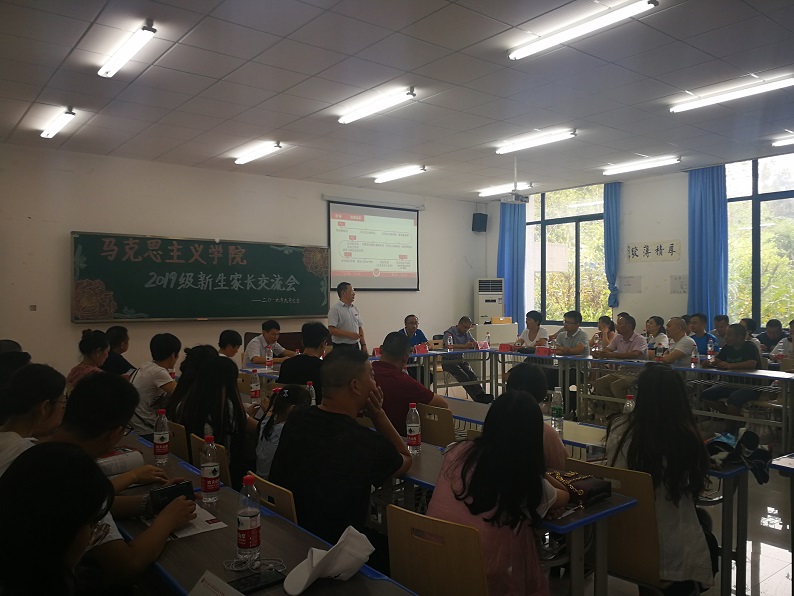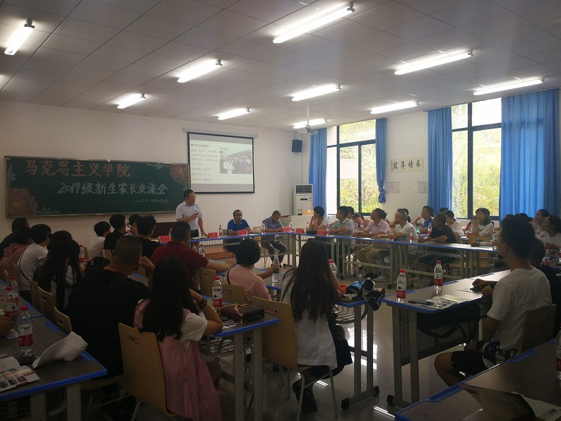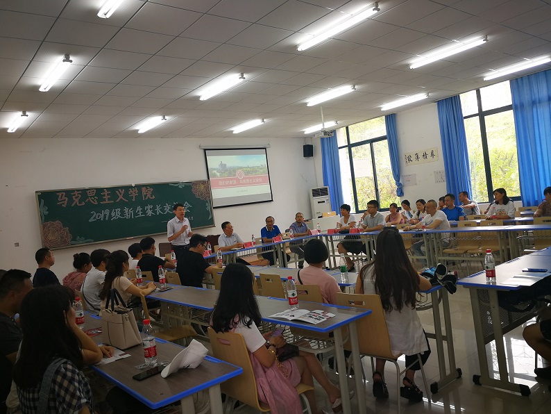 为搭建新生家长与学院面对面沟通平台,使新生家长深入了解我院改革发展和教育教学情况,共同助力2019级新生成长成才,2019年9月7日下午,我院在汇贤楼106教室举办了2019级思想政治教育专业本科新生家长交流会。学院党委书记刘军、院长陈洪、副书记姜土生,政教系副主任田方林教授、党政办主任廖文梅、团总支书记和学工办主任马小又、教学科研办主任张晓庆,以及2019级新生家长70余人参加交流会。交流会由学院党委副书记姜土生主持。