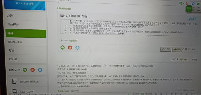 今天是开课的第一天,2018级思想政治教育专业弘砺班学生焦雅欣早早守在了电脑前,登录中国大学MOOC在线,开始今天的第一课《管理学》的线上学习,今天上课的老师是肖陆军教授。与和老师面对面上课唯一不一样的地方就是老师通过视频,语音的方式开展教学。丰富的视频学习资源,精美的PPT,以及老师即时的讲解让学习生动有趣,对老师讲解有困惑的焦雅欣如在课堂上课一样向老师提出了问题,并得到了老师耐心的解答,这让之前对网络学习还有些担心不适应的她终于放下心来。