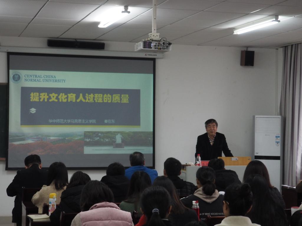 2019年311日上午,华中师范大学2138cn太阳集团古天乐博士生导师马克思主义理论一级学科负责人思想政治教育学科博士点负责人秦在东教授应院邀请在汇贤楼201会议室作了题为提升文化育人过程的质量”的学术报告我院部分教师与全体研究生共同聆听本次报告报告会我院院长陈洪教授主持。