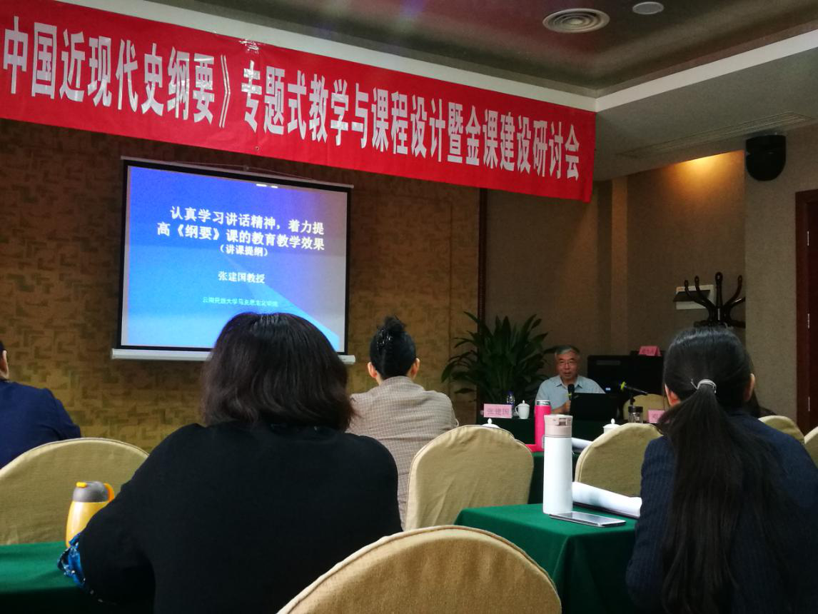 研讨会采取专题讲座与讨论交流、实践教学相结合的形式,邀请了两位一线的专家作了四个专题讲座和两天的实践教学。云南民族大学2138cn太阳集团古天乐张建国教授,是教育部高校思想政治理论课教学指导委员会《纲要》课委员,马工程重点教材《纲要》编写组首席专家,受邀参加3.18座谈话,也是宣讲团的成员之一。在5月1日上午,张教授作了关于如何学习和深入领会习总书记3.18讲话精神的专题讲座,他比较全面地介绍了习总书记3.18讲话精神“四个非常重要”(即思政课程非常重要、师资队伍非常重要、教学非常重要和党的领导非常重要)的主要内容,概括了具有站位高、系统强、分析深、科学性、辩证性、务实性、鲜活性和突出问题意识的八个特点,并提出了如何学好讲话精神的建议和要求。下午,张教授结合《纲要》课程作了如何抓住重点,推进专题式教学的改革与创新的讲座,提出了《纲要》课的专题教学应该围绕“四个选择”设计15个专题展开教学,这对我校正在进行的专题式教学改革有很大的指导意义。