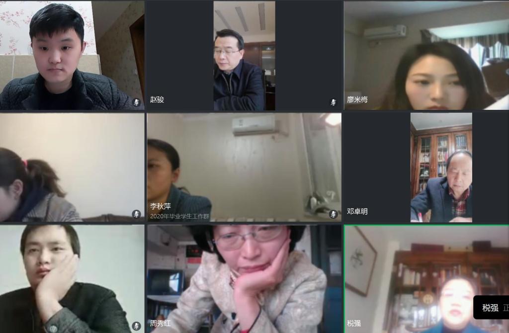 目前正值新冠肺炎疫情特殊时期,为加强对毕业研究生学位论文的指导和管理,切实提高研究生培养质量,学院认真贯彻落实教育部和学校工作要求,切实担起责任,努力做到研究生学位论文与学位授予工作质量不降、标准不变、程序规范、方式便利。根据学校的要求和学院的安排,2020年4月2日、3日下午,我院采取钉钉视频会议的形式分别开展了2020届马克思主义理论、哲学学科学术型研究生和学科(思政)专业学位研究生学位论文线上预答辩工作。