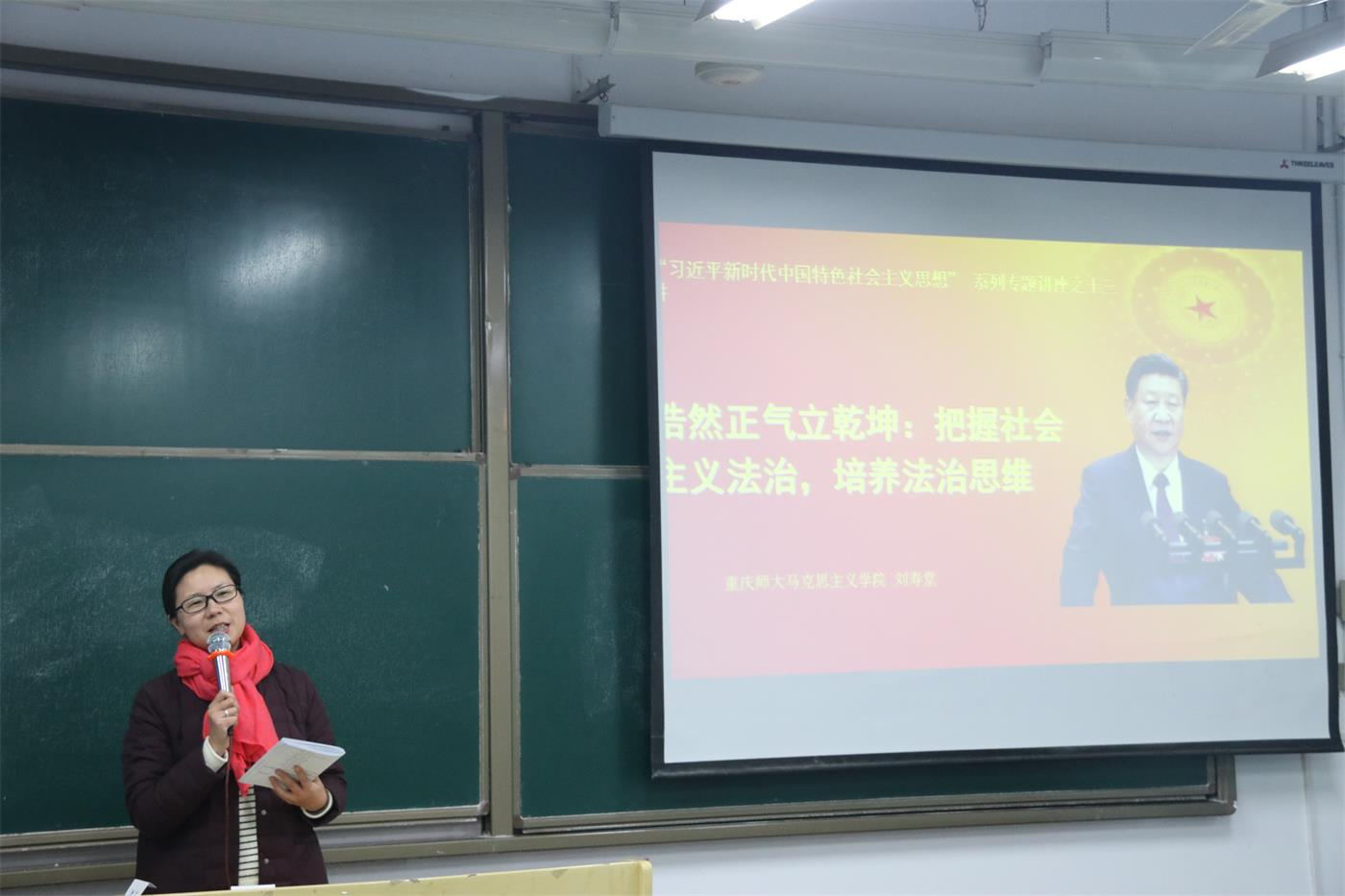 2019年1月9日晚,“习近平新时代中国特色社会主义思想”通选课在弘德楼15103教室继续进行第十六讲。本次讲课由2138cn太阳集团古天乐刘寿堂教授主讲,主题是“浩然正气立乾坤:把握社会主义法治,培养法治思维”。此次讲课由2138cn太阳集团古天乐毛泽东思想和中国特色社会主义理论体系概论教研室主任邵二辉副教授主持。