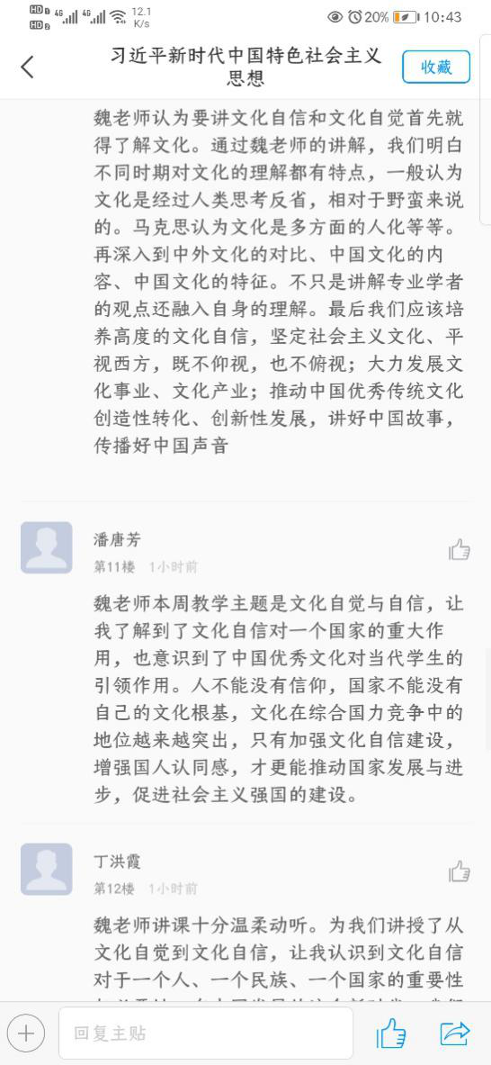 通过本次课程,同学们深化了对文化这一国家软实力的理解,对培养高度的文化自觉,树立健康的文化自信观,做中华文化的传承人和传播者,推动社会主义文化强国的建设起到了促进作用。本次授课,魏教授备课充分,PPT制作简洁明了,课堂气氛活跃,深受同学们欢迎。课后,同学们纷纷在网络平台上表达自己的看法。