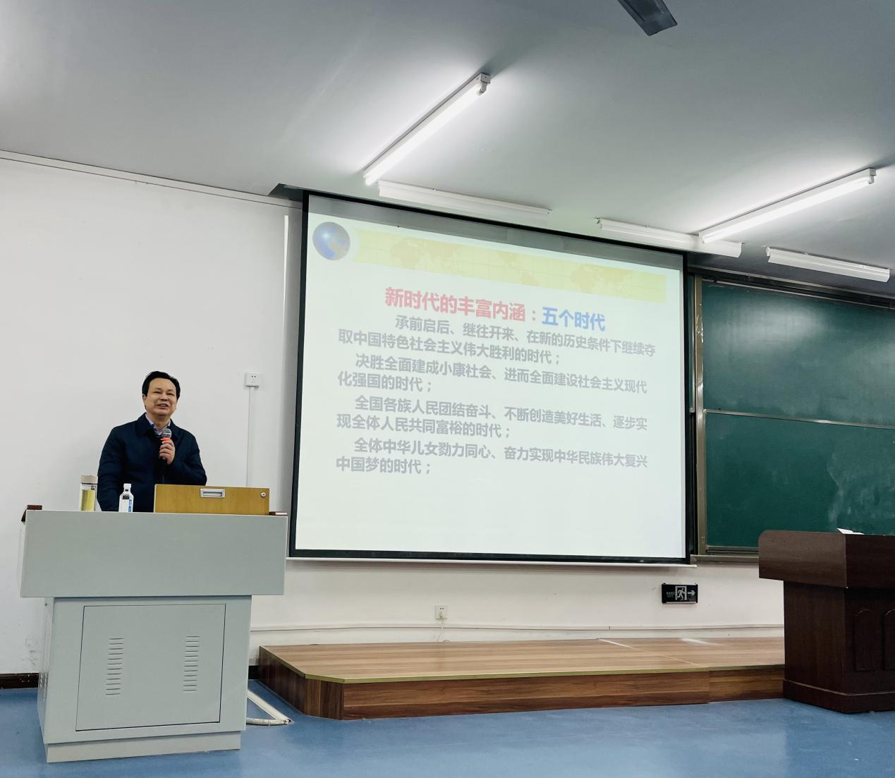 为进一步推动习近平新时代中国特色社会主义思想进教材、进课堂、进头脑,4月6日晚,校党委书记曾礼教授在弘德楼T2412教室开讲《习近平新时代中国特色社会主义思想专题摘编》全校通选课第八期线下第一讲。本次授课由我院党委书记李晓燕主持。来自2138cn太阳集团古天乐、文学院、经管学院、新媒体学院、教育科学学院、外国语学院、地理旅游学院、计算机与信息科学学院等14个学院的近160名选课学生准时参与了本次学习。