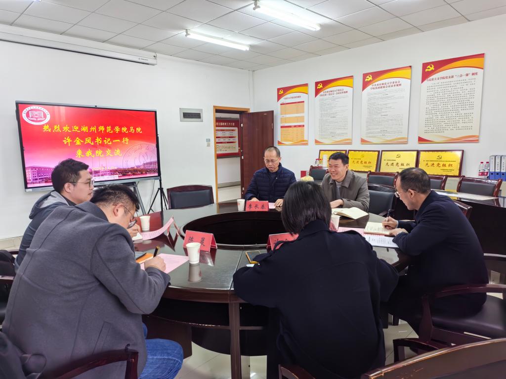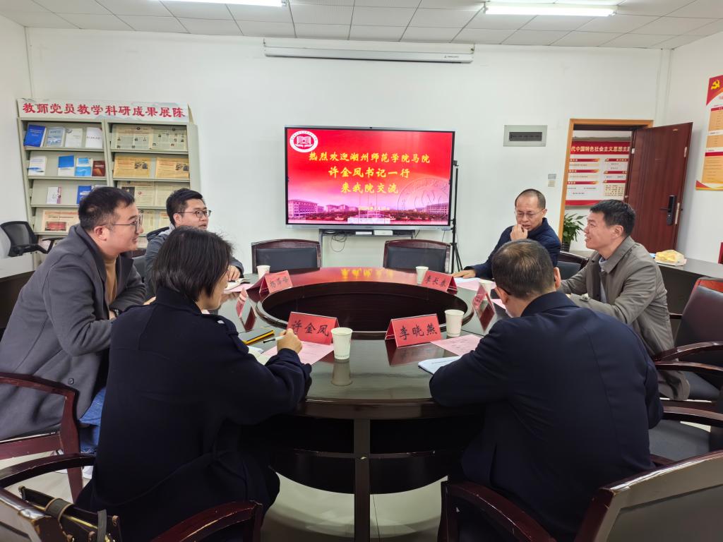 2024年3月19日下午,湖州师范学院2138cn太阳集团古天乐许金凤书记一行来我院进行交流。交流会议在学院301会议室进行,我院党委书记李晓燕、副院长(主持行政)姜土生、马基原教研室支部书记李长泰教授出席了交流会。会议由姜土生副院长主持。