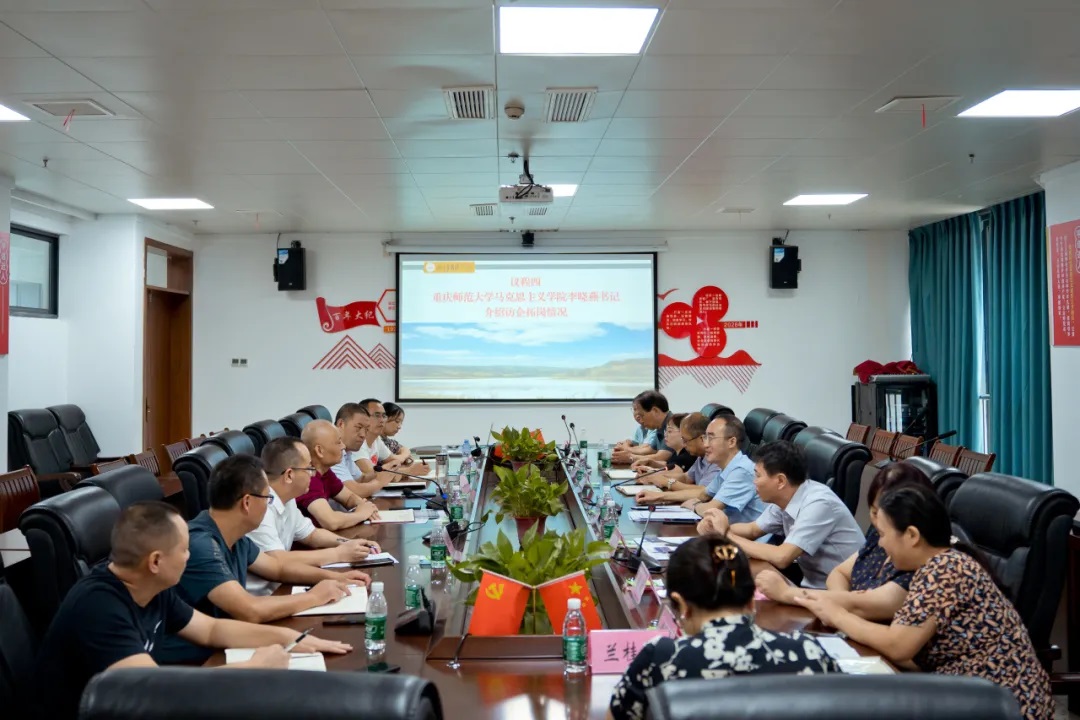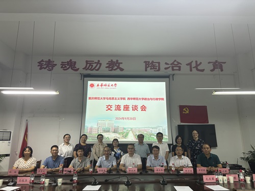 2024年9月20日下午,学院一行九人来到西华师范大学政治与行政学院进行交流。西华师范大学政治与行政学院党委书记李永洪、院长黄祖军、副院长罗开文、副院长尹学朋、党委副书记范华岭、思政系主任陈兴丽、师范技能培养中心主任徐娟等参加交流,交流会议由罗开文副院长主持。李永洪书记从该院招生、学科(思政)研究生培养、师资队伍建设等方面进行了学院情况介绍。随后,双方围绕思想政治教育专业人才培养方案改革、专业课程建设创新、实践教学创新、就业工作创新、学科建设与科研工作、师范生技能培养等方面进行了深入交流。我院李晓燕书记高度评价西华师范大学政治与行政学院在办学中的先进做法,特别称赞对方“追梦工作室”在师范生技能培训中发挥的重大作用,充分肯定该院学生在川渝两地用人单位获得的广泛赞誉。西华师范大学政治与行政学院院长黄祖军在总结中提出,两地学院在今后要进一步加强思想政治教育专业办学的交流互鉴,共同书写新时代思想政治教育专业发展新篇章。