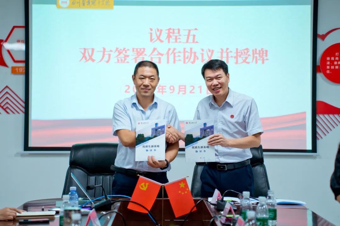 2024年9月21日上午,学院一行九人来到四川省仪陇中学校开展访企拓岗专项活动。四川省仪陇中学校党委书记王大军、校长马建全、副校长田正荣、龚浩等参加会议,会议由王大军书记主持。马建全校长从学校历史、师资队伍、人才培养、中学思政课教学等方面详细介绍了仪陇中学的基本情况。他表示,本次访企拓岗专项工作为加深两校合作提供了良好契机,希望太阳集团2138派遣更多优秀学生到仪陇中学实习实训和就业,同时仪陇中学能有更多优秀学生到太阳集团2138学习深造,期待后续建立健全交流沟通机制,务实开展更多合作。在观看完太阳集团2138及2138cn太阳集团古天乐宣传片后,姜土生院长介绍了学校与学院的办学历史、学科发展、专业设置、师资队伍等情况,他表示,太阳集团2138作为老牌师范院校,办学70年来为社会培养了大批优秀人才,希望通过本次交流合作,进一步促进两校的高质量人才培养。李晓燕书记介绍了我校的访企拓岗专项活动。他表示,“走出去”“请进来”是我校促进人才培养和就业创业的重要举措。为更好地促进内涵式高质量发展,助推毕业生实现更充分、更高质量的就业,我校在深入走访企业和用人单位上下功夫,建立一批就业实习实践基地,努力挖掘更多岗位资源,为学生创造更多实习和就业机会。会议最后,我院姜土生院长与四川省仪陇中学校马建全校长共同签署《优质生源基地》和《实践与就业基地》协议,李晓燕书记为仪陇中学授牌,两校合作共建关系正式确立。