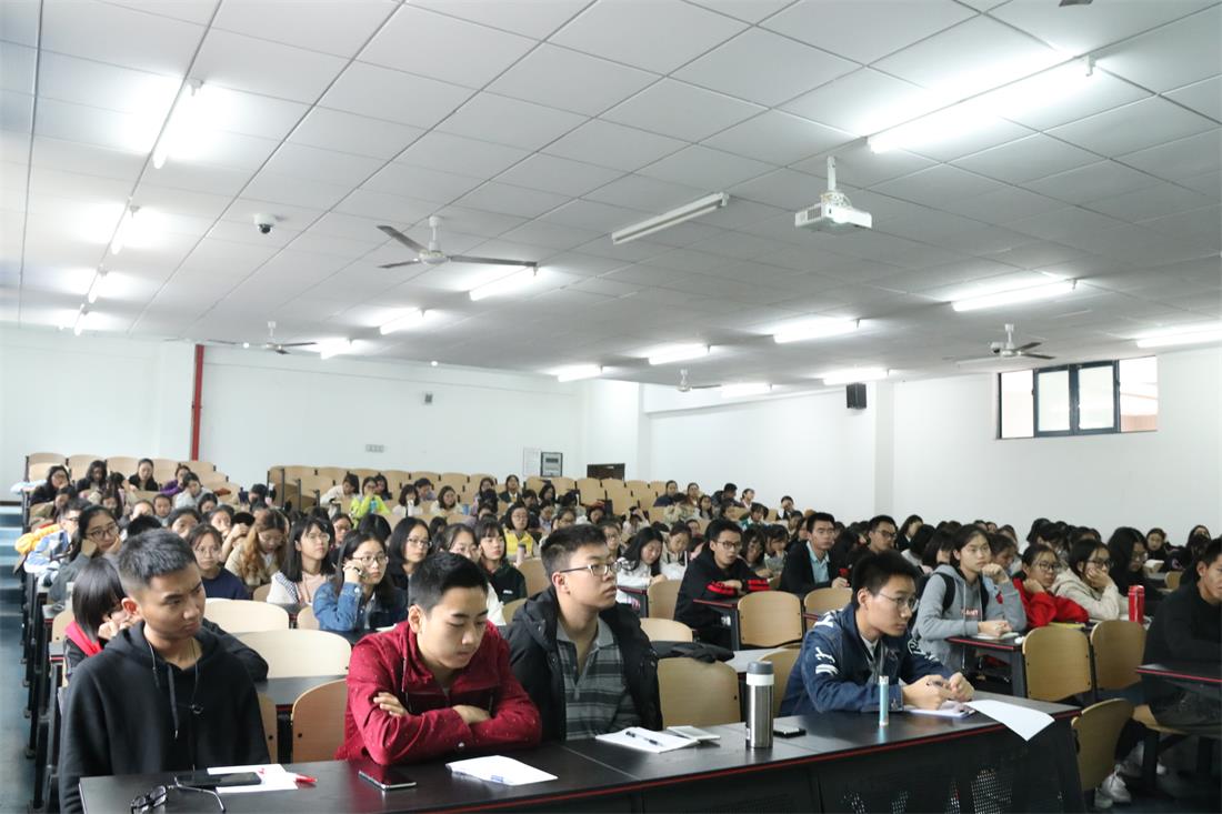 讲座伊始,韩琳老师用“一苦”“一乐”“一价值”三个关键词概括她曲折艰难的从业感受,并特别强调:“教师的苦都有感受,可教师的乐并非人人都能体会。可当你一句不经意的话、一个不经意的动作对一个人的未来产生影响时,你便会理解教书育人的真谛”。接着,韩琳老师从如何协调工作与学习、如何带动课堂气氛以及大学四年规划等版块对同学们的未来生活提出了具体的建议。特别是在关于大学四年规划上,韩琳老师总结出“广度”“深度”“高度”“温度”四个词语,并着重强调“广度”一词。她认为,广度包括专业知识上的广度和社会实践上的广度,这些知识和经验不仅丰富着自己的大脑,也有利于提升自己的气质和修养。韩琳老师这番诚恳的建议引起了同学们的强烈共鸣,并赢得了热烈的掌声。最后,讲座进入提问环节,同学们积极发言并向韩琳老师请教各方面问题,韩琳老师都一一进行解答,讲座现场气氛活跃,同学们态度积极,互动良好。