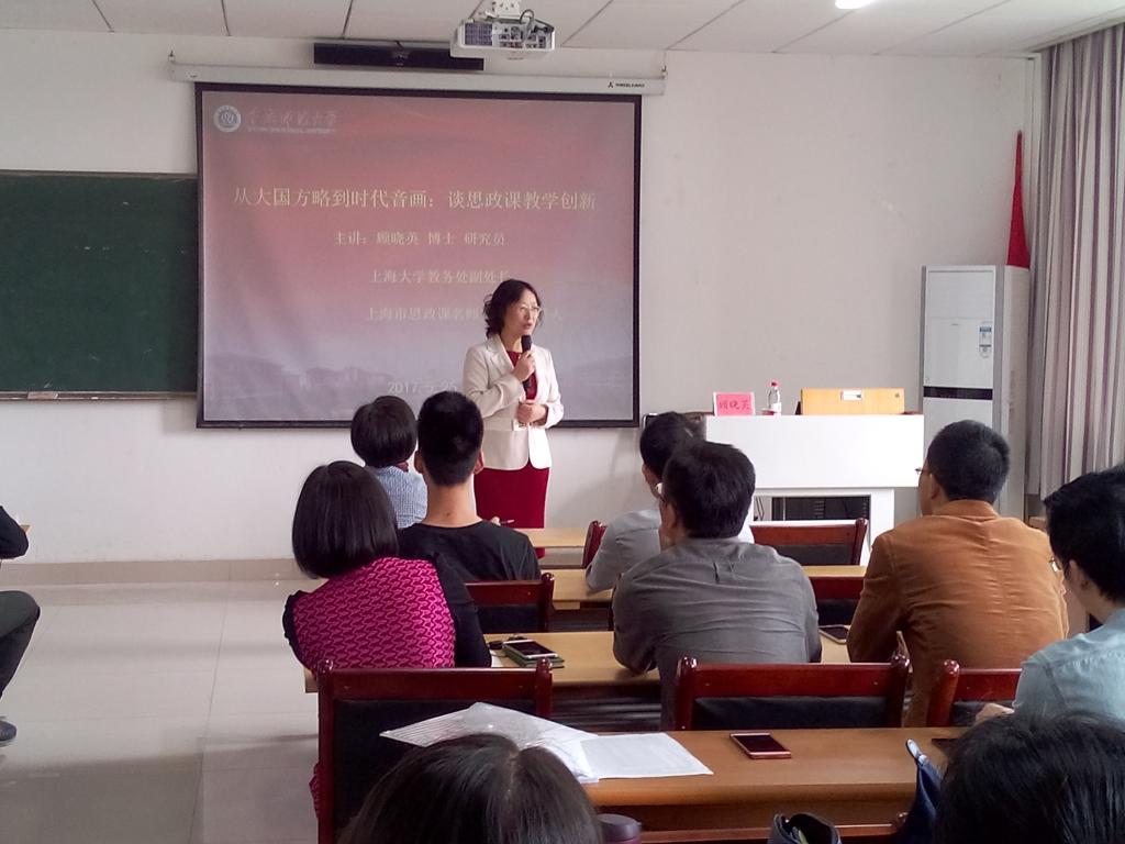 顾晓英博士长期坚持在高校思想政治教育教学第一线,并不断创新教学模式,她的教学热情与创新精神受到了我院老师的赞扬。在交流会上,老师们积极发言,与顾晓英博士共同探讨思想政治理论课改革与创新过程中的疑难与困惑。