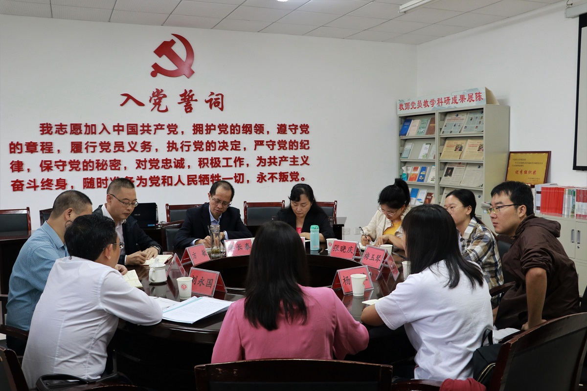 接着,李长泰教授和程智副教授分别介绍了我院“马克思主义基本原理概论”教研室、“毛泽东思想和中国特色社会主义理论体系概论”教研室的师资队伍、教学安排、教研活动、科研成果等情况。李教授提出教师要重视科研,以科研推动教学,不断提升教学质量。程智副教授指出教研室的发展离不开每位老师的付出和努力,也分享了教研室成员积极主动承担责任,为学院发展持续努力的故事。