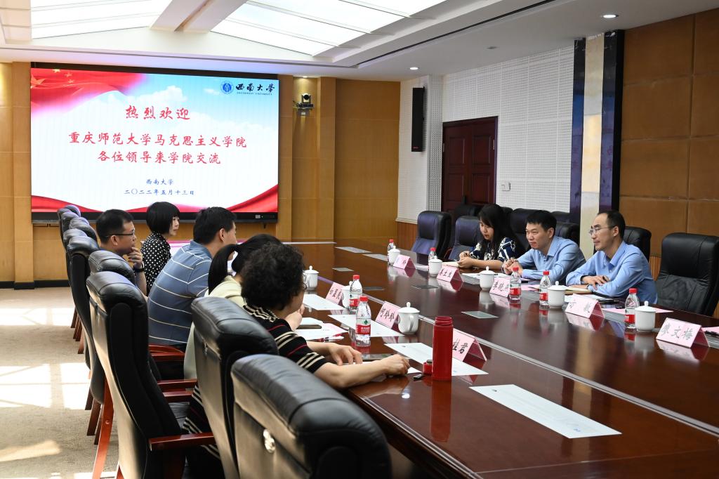 为进一步加强学院教学科研、学科建设、人才培养、师资队伍建设工作,持续推动学院高质量建设发展,2022年5月13日上午,我院班子一行特赴西南大学马克思主义院进行学习交流。