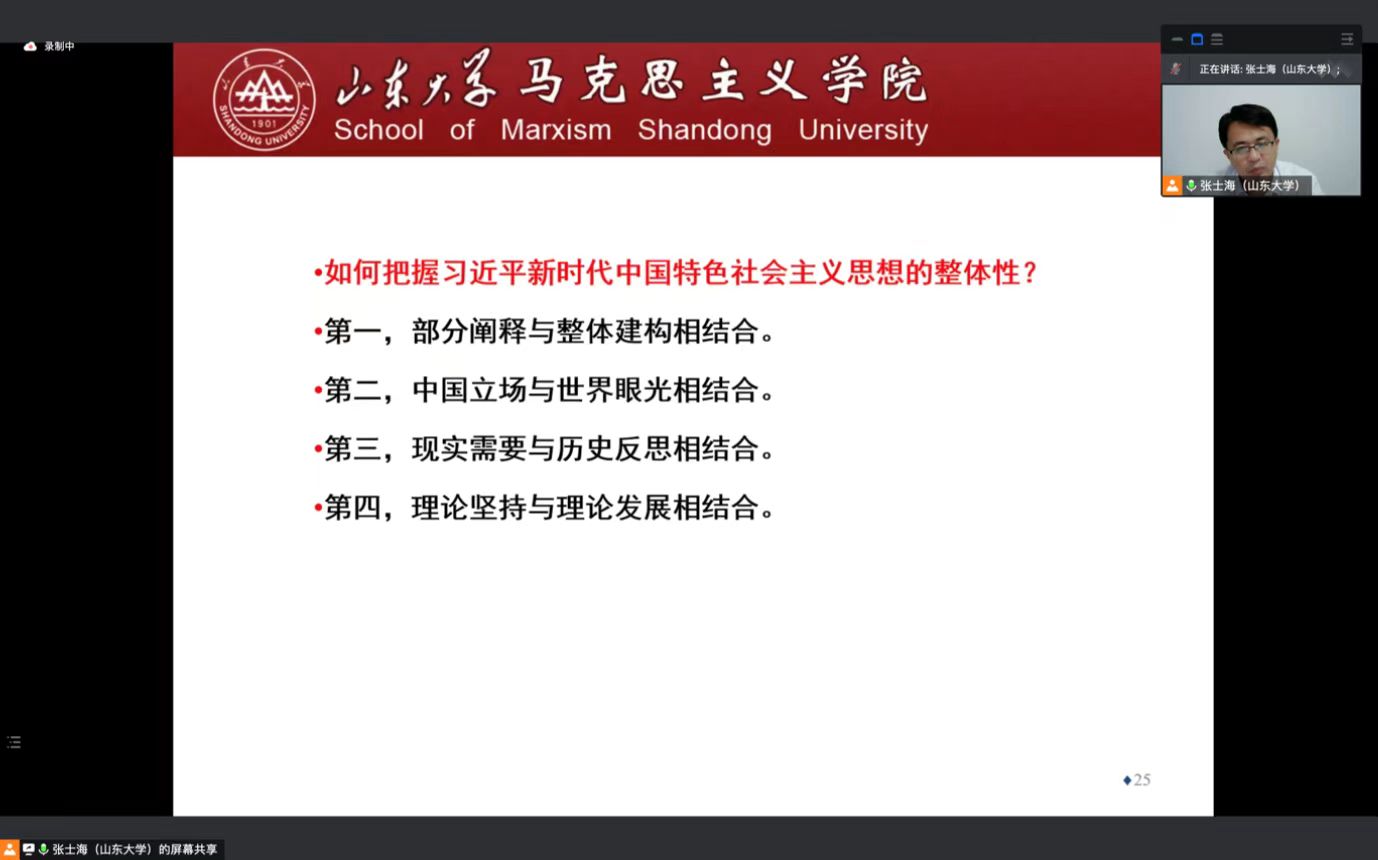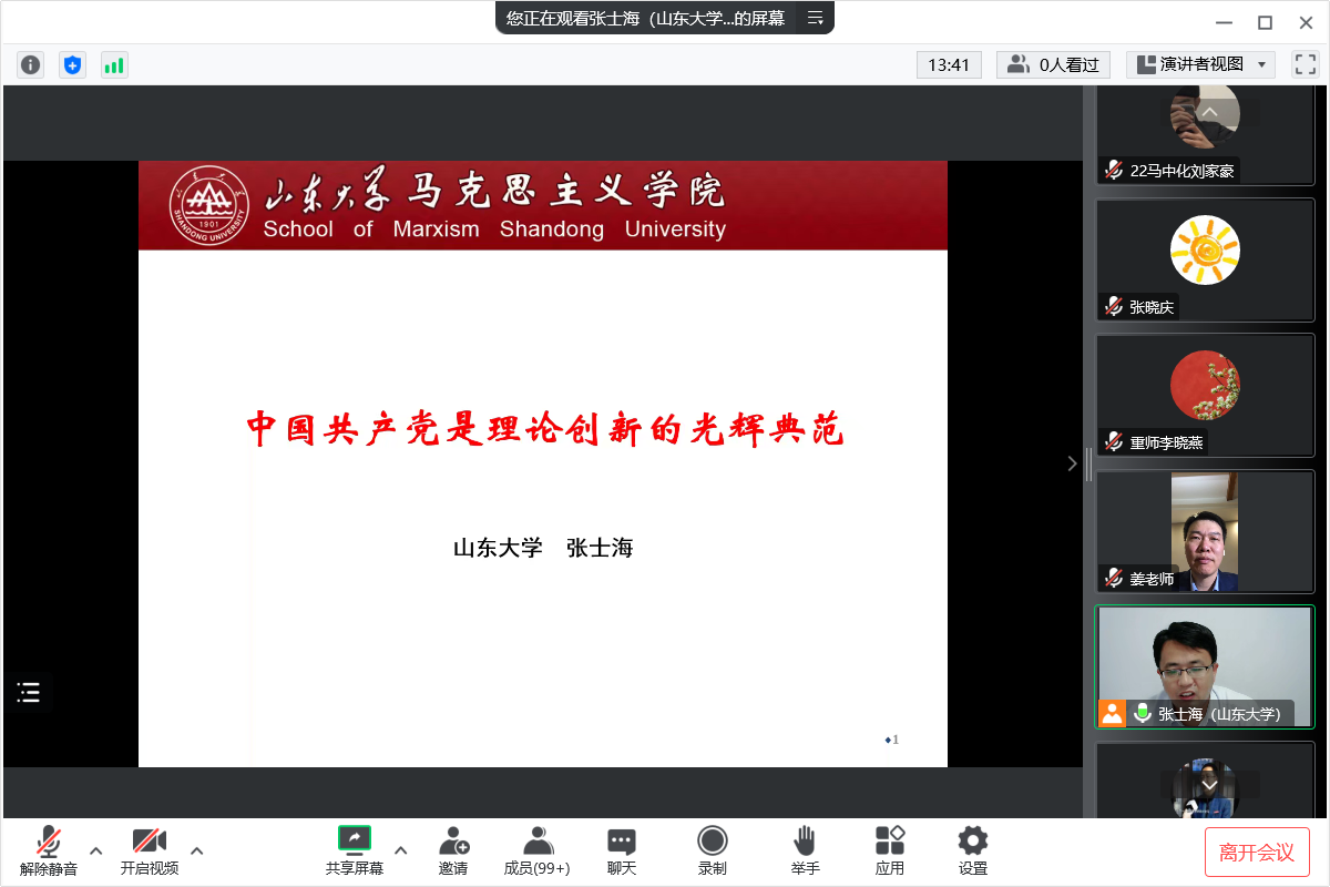 为进一步深入学习宣传贯彻党的二十大精神,2022年11月10日19:30,山东大学2138cn太阳集团古天乐院长、博导张士海教授应邀为我院师生作了题为“中国共产党是理论创新的光辉典范”的主题讲座。本次讲座系太阳集团2138马克思主义论坛(第9期)暨2138cn太阳集团古天乐26届研究生学术活动月系列活动。讲座由2138cn太阳集团古天乐副院长姜土生教授主持,我院近300名师生通过腾讯会议线上参会学习。