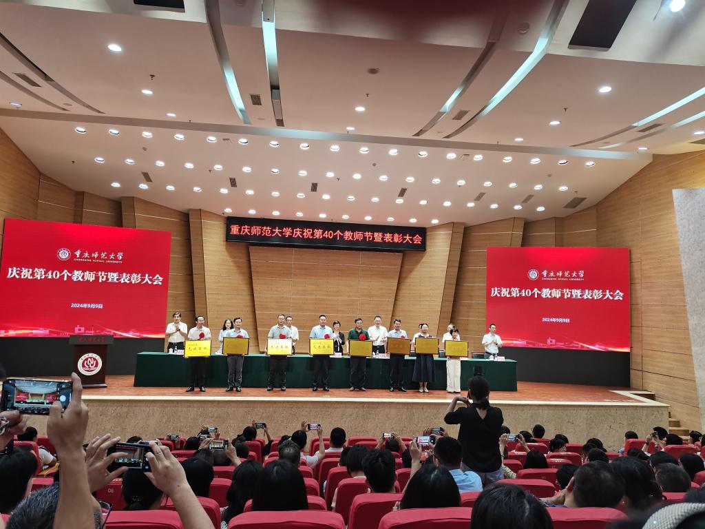 2024年9月9日下午,我校在校友会堂音乐厅隆重举行庆祝第40个教师节暨表彰大会。其中,我院受表彰的有:学院获学校先进集体,担当作为好干部李晓燕,师德标兵孔庆茵,校级优秀教师张晓庆、何勇、徐琴、李晓敏、蒋明伟,校级优秀辅导员刘洪,从事学校工作满三十年李长泰,最受2024届毕业生欢迎教师吴涯。此外,我院全国优秀教师兰桂萍教授作为教师代表在表彰会上进行了饱含深情的发言。