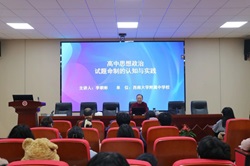 2024年12月4日14时30分,西南大学附属中学李朝彬老师受邀为我院师生做题为“高中思想政治试题命制的认知与实践”的专题讲座,讲座由学院副院长田方林教授主持,学院部分教师、同学到场学习。