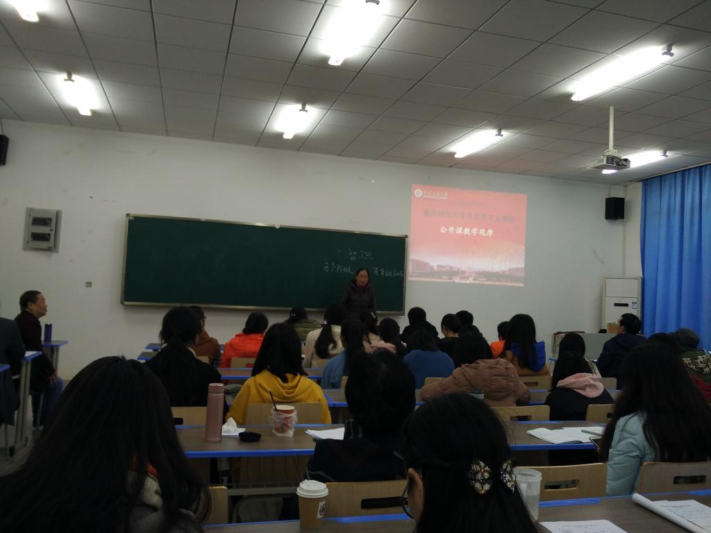 公开课环节,王开莉博士讲授了《思想道德修养与法律基础》课“辩证对待人生矛盾”小节,课程以问题为导向,方式新颖,授课有激情,充分展示了扎实的基本功。高珊博士讲授了《毛泽东思想和中国特色社会主义理论体系概论概论》课“生态文明建设——同心共筑美丽中国”小节,她采用启发式教学,内容充实,案例丰富,注重与学生互动,课堂气氛较好。李晓敏博士讲授了《马克思主义基本原理概论》课“实践的特征”小节,以故事导入正题,语言朴实严谨,教学环节完整。