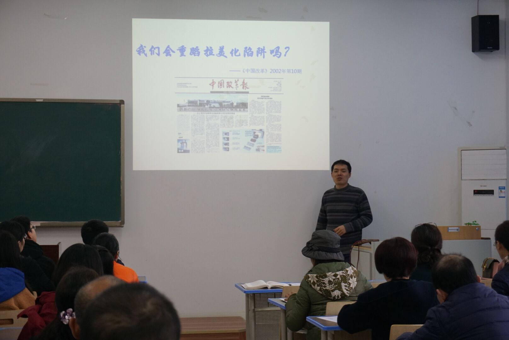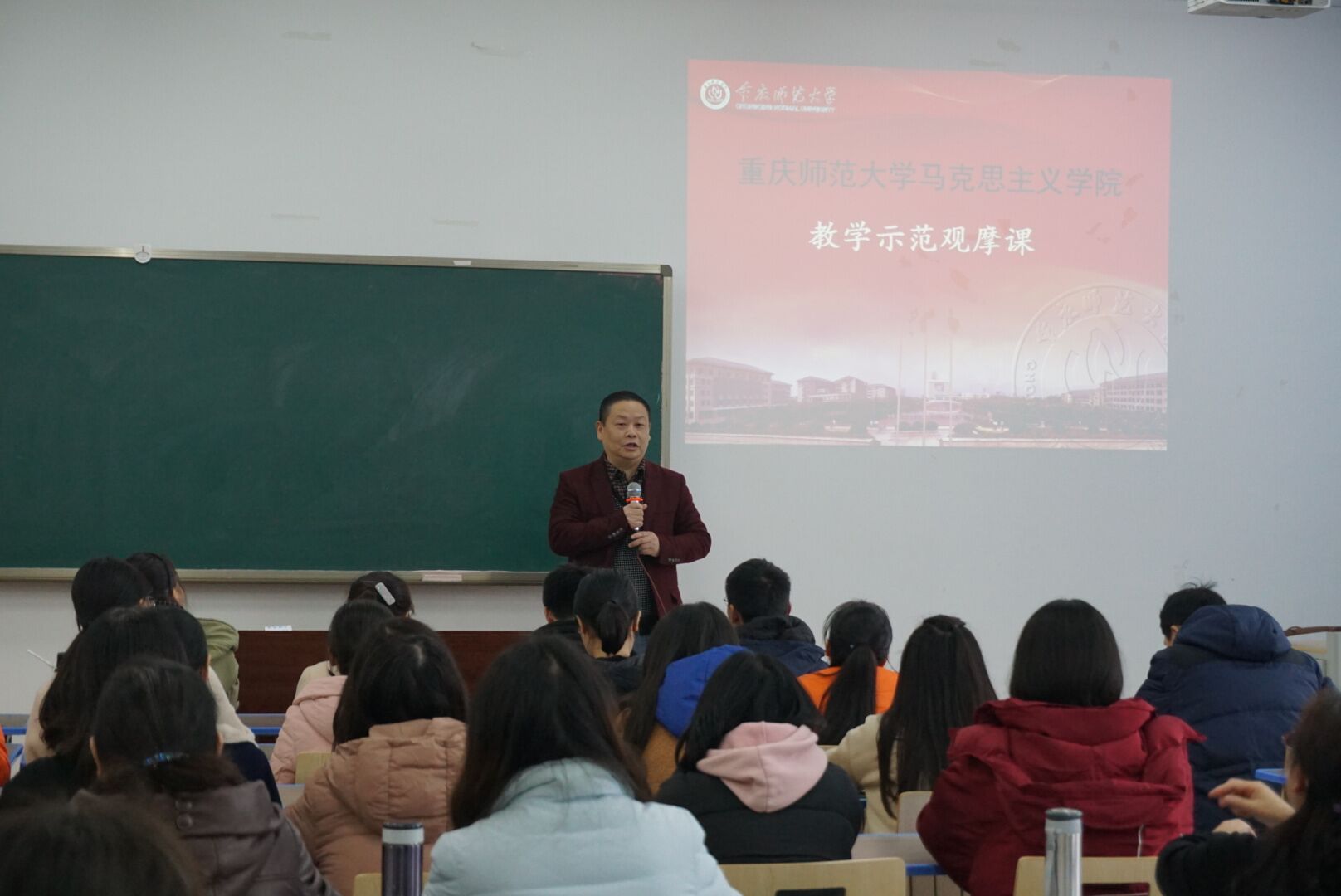 在教学示范观摩课环节,杜红博士讲授了《马克思主义基本原理概论》课“科学技术在社会发展中的作用”小节,她思维清晰、语言流畅,课程兼顾思想性、逻辑性和直观性。沈乾飞博士讲授了《毛泽东思想和中国特色社会主义理论体系概论概论》课“贯彻新发展理念”小节,由问题导入,激发学生积极思考,引经据典,详略得当。两位老师精心选题,深入钻研教材,研究教学方法,遵循新理念,采用现代教育技术,以培养学生学习能力为目标,注重对学生进行价值引导。