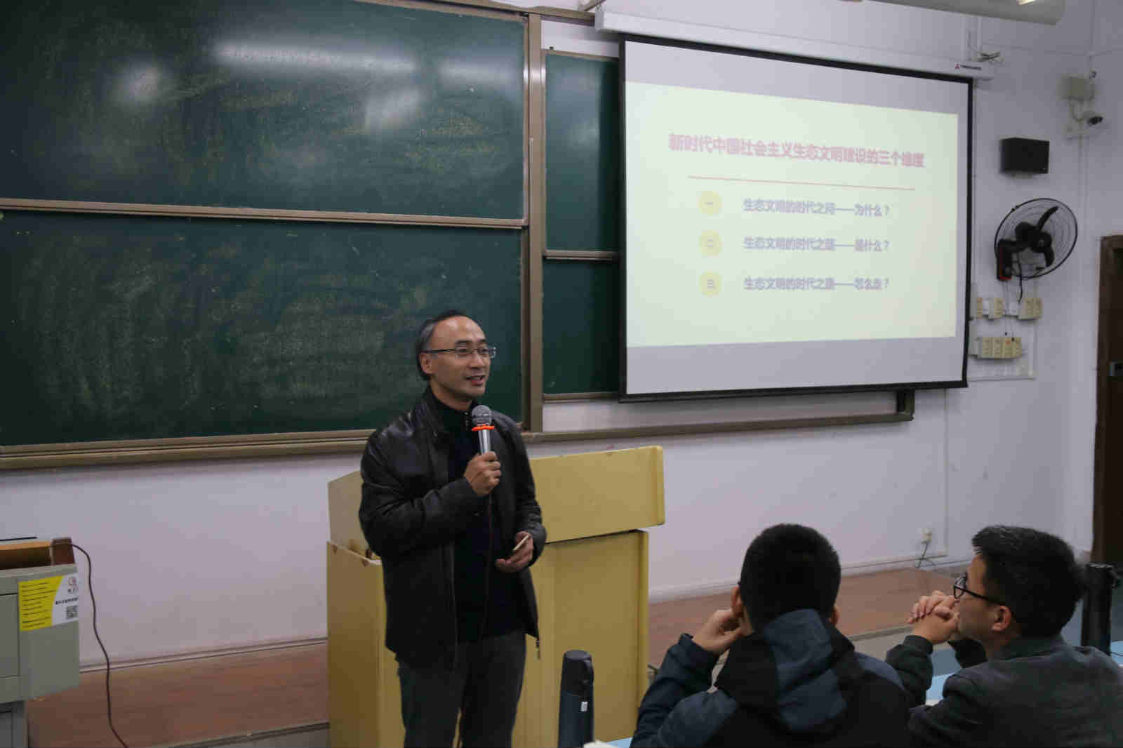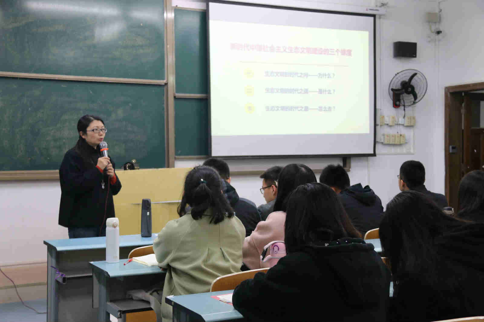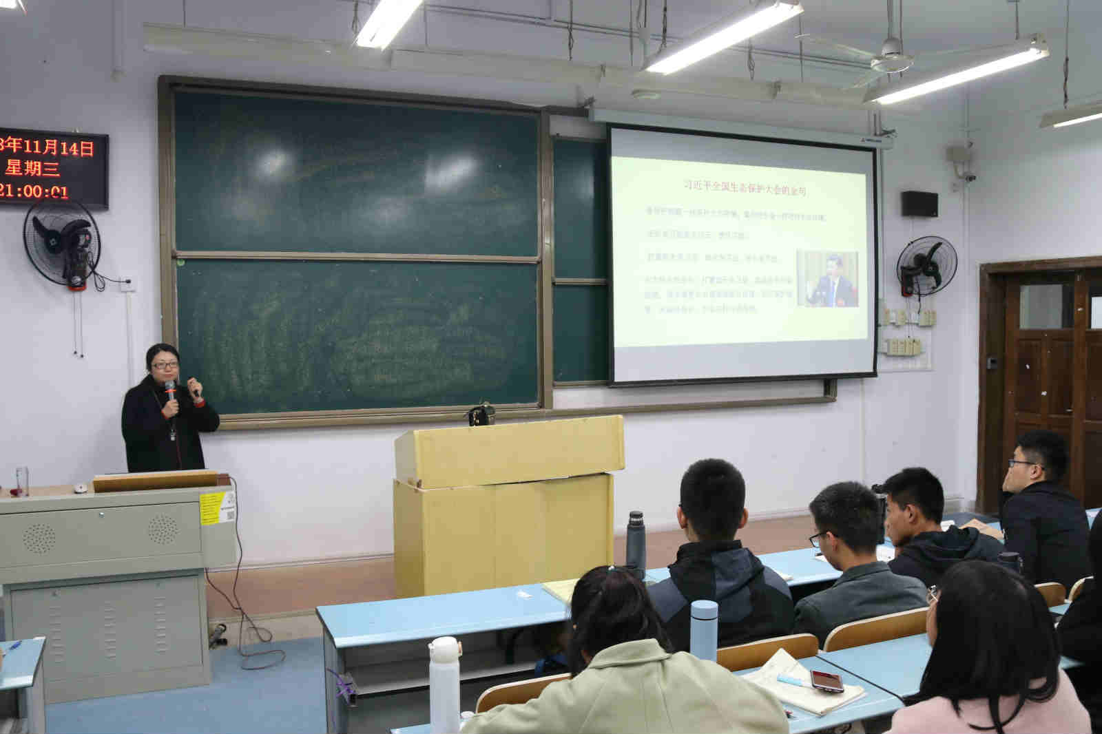2018年11月14日晚,“习近平新时代中国特色社会主义思想”通选课在弘德楼15103教室继续进行第八讲。本次讲课由2138cn太阳集团古天乐兰桂萍副教授主讲,主题是“近水楼台先得月:绿水青山就是金山银山”。讲座由学院党委书记刘军主持。