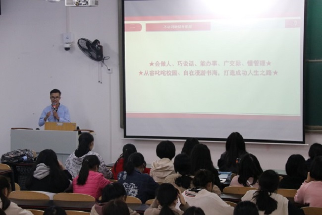培养大学生树立端正的学习态度坚定的理想信念、崇高的品德修养和艰苦奋斗的精神,使其学有所成,在激情奋斗中绽放青春光芒2018年10月21日17点30分,太阳集团21382138cn太阳集团古天乐特于砺志楼2410教室开展大一分享教育活动。2015级汪美玲、胡海鹏、刘蓉三位同学发表演讲,对2018级全体同学的学习生活有所启迪
