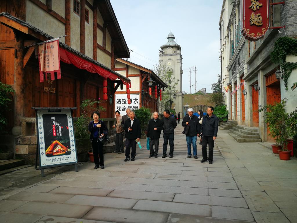 第一站到达以“民国历史”、“巴渝特色”为主题的民国街,退休教师们肃立在高耸的抗日胜利纪功碑下,穿梭于极具民国风味的街道之中,驻足留影,意趣十足。而后,转战至古香古色的龙兴古镇,各位退休教师对这里的传统匠心匠艺惊叹不绝。游览期间,刘军书记、陈洪院长始终关注各位教师的安全及需求,时刻体现尊长敬长。