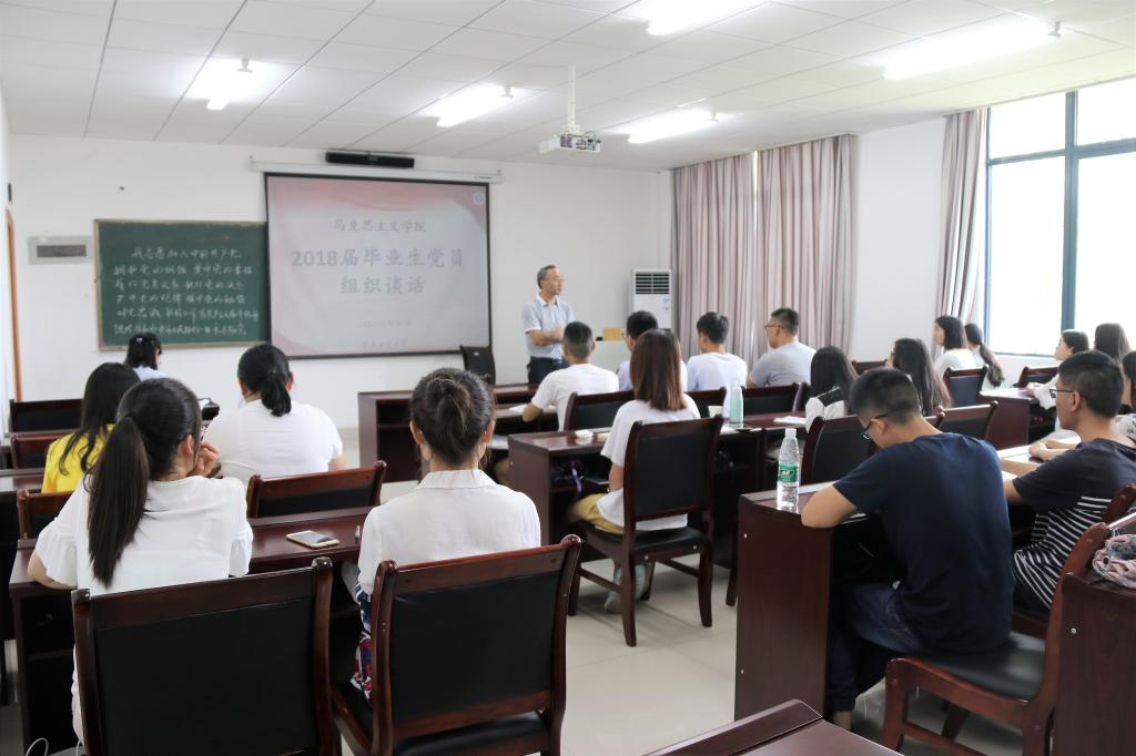 随后,党委书记刘军开展组织谈话。他对毕业生党员提出了三点希望和要求:一是牢记自己的党员身份,时刻用党员标准要求自己,发挥党员应有的价值和作用;二是坚定理想信念,不忘初心,积极践行,在今后的工作岗位上勤奋努力,做事业中的佼佼者;三是坚持学习,保持先进,深刻领会习近平总书记系列重要讲话精神和治国理政新理念、新思想、新战略。最后,刘书记期望:毕业生党员们能够牢记使命、勇于担当,用“青春梦”托起“中国梦”,以优异的成绩为党旗增辉,为母校添彩。