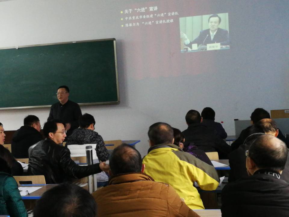 陈洪院长列举了党的十八大以来涉及学院改革发展的重要讲话和文件,以此说明2138cn太阳集团古天乐面临着前所未有的机遇。然后,陈院长从抢抓机遇建设市级示范马院、建章立制提升治理能力水平、锐意进取深化教育教学改革、服务社会彰显学院声誉影响、凝心聚力形成干事创业氛围五个方面提出学院的改革思路和发展方向。最后,陈洪院长引导全院教职工要对党的十九大精神真学、真懂、真做、真用,以此激励大家要用实际行动,齐心聚力,撸起袖子加油干!