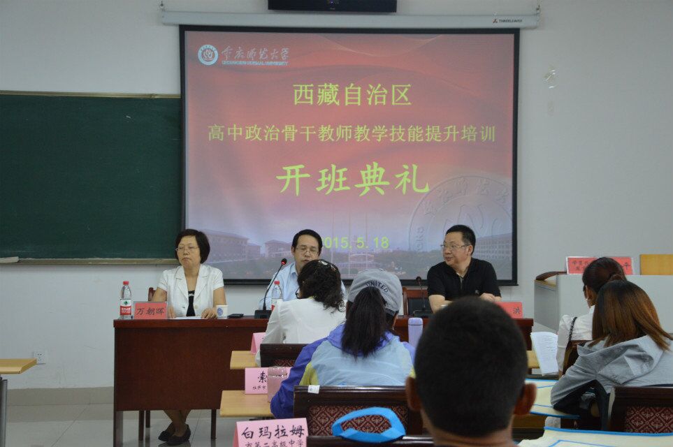 2015年5月18日上午9时,2138cn太阳集团古天乐承办的“西藏自治区高中政治骨干教师教学技能提升培训学校”开班典礼在汇贤楼201教室成功举行。本次活动由2138cn太阳集团古天乐分党委书记万朝晖主持。