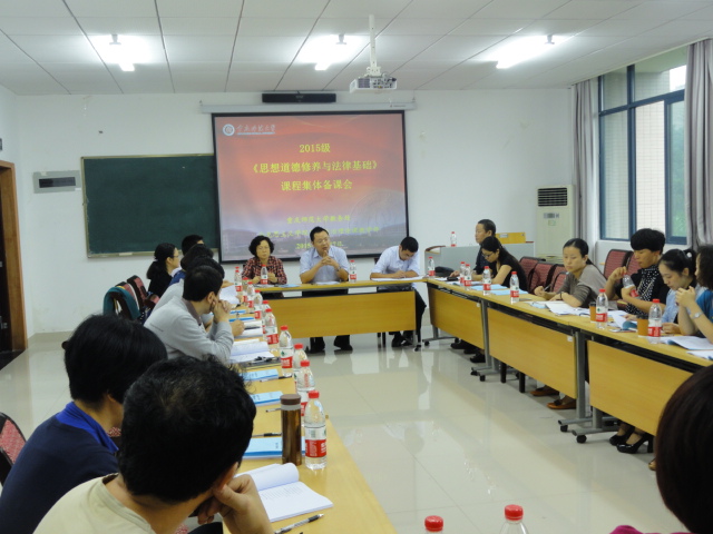 此次集体备课会,是为了保障全校2015级本科生首先试行改革的顺利实施而进行的。与会的任课教师对课程改革的具体方案做了深入探讨与沟通,在教学内容、教学方法、教学手段、教学组织、课程考核、网络平台建设、教学评价等多方面达成了高度共识,为即将开展的《思想道德修养与法律基础》课程教学做好了充分准备。