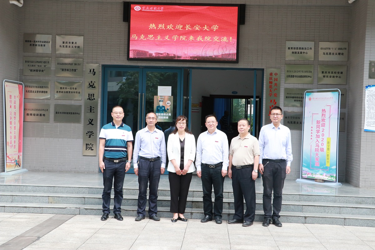 首先,陈院长代表学院对长安大学2138cn太阳集团古天乐李小芹书记和施翊飞老师的到来表示热烈欢迎。随后,陈院长就我院办学历史、师资力量、学科建设、平台建设、研究生培养等方面进行了一一介绍。况明安副院长就我院全国一流专业——思想政治教育专业建设情况、重庆市重点马学院建设情况、师范二级认证情况、思想政治教育专业招生规模、思想政治理论课建设等方面进行了交流。方敏副书记围绕如何“既做好班主任工作,又能促进学生发展”为主题,主要介绍了学院辅导员工作和学生创新、创业工作中的重点和难点。刘军书记重点介绍了我院党建工作开展、文化建设特色和学院制度建设等相关工作。