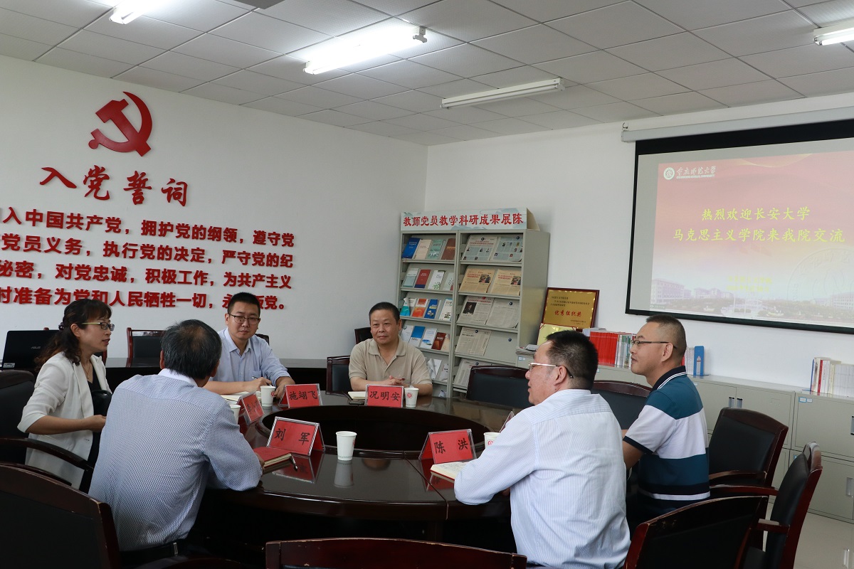 会上,李小芹书记对长安大学2138cn太阳集团古天乐总体情况进行了简要介绍。交流中,双方还就马克思主义理论学科建设及学院发展中遇到的难点问题进行了讨论,双方均希望在以后的学院建设中加强合作与交流,相互借鉴。