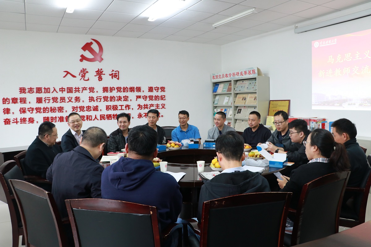 方敏副书记向老师们分享了自己与马院的缘分与渊源,并给大家交流了学生管理相关工作,强调各位新进教师是从严治党、师德师风建设等方面的生力军,大家对学生的培养与引导一定要有积极正面的影响。