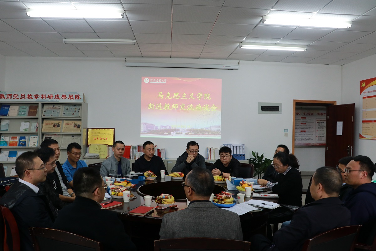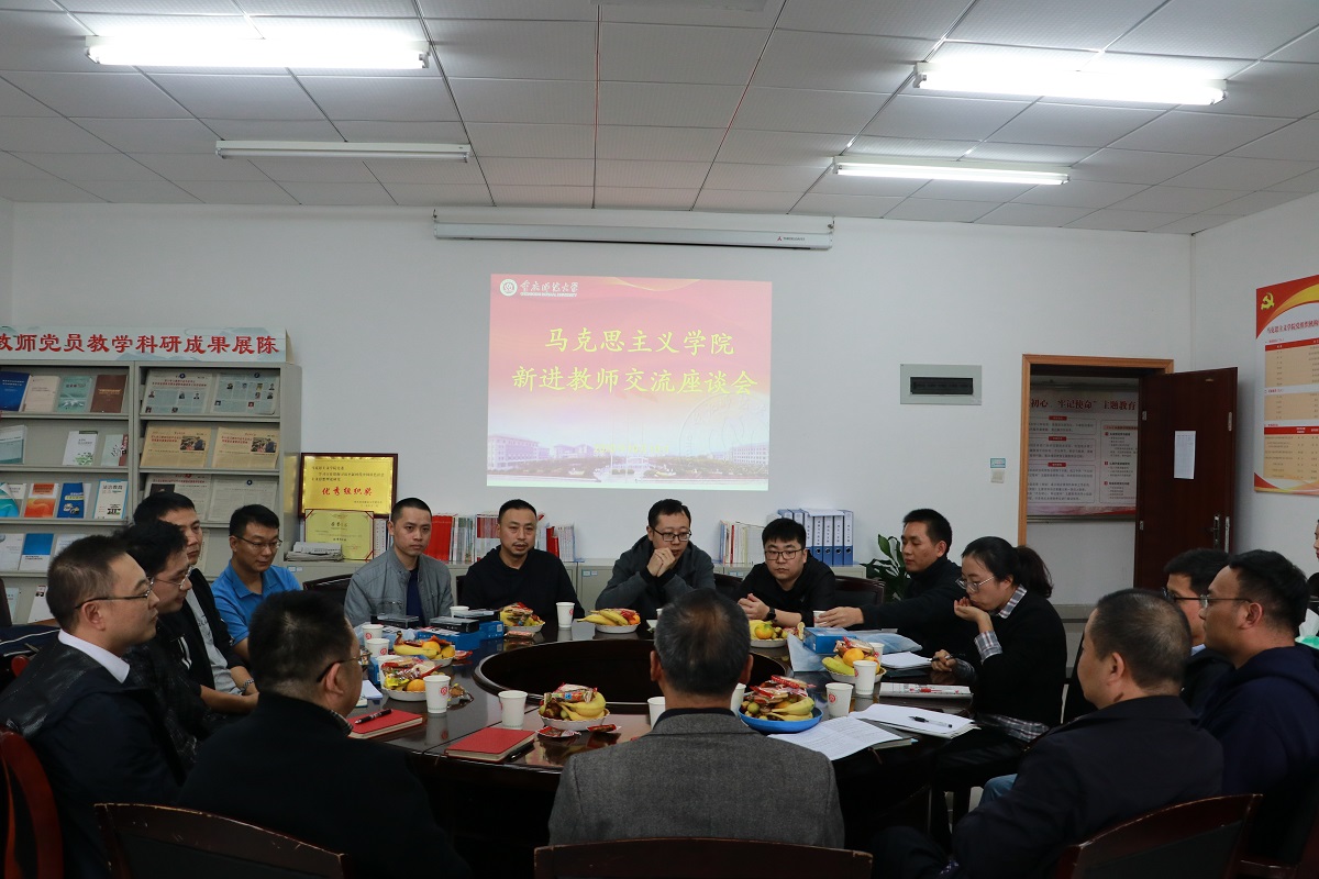 与会的新进教师们纷纷交流了自己进校以来的工作体会与生活感受。大家认为:学院领导的亲切关怀、指导教师的倾心指教、行政人员的热情服务,让大家感受到工作环境的舒心和生活的温暖。交流中,新进教师还对学院教学科研资料借阅、教师培训、科研平台的参与、办公场地需求等提出相关建议。他们表示,在国家和党中央的重视下,马克思主义理论发展遇到了最好时机,这正是我们重师马院飞速提升的时期,我们愿与学院一道努力,在教学科研上努力突破自己,在成就个人的同时使学院有更大发展。