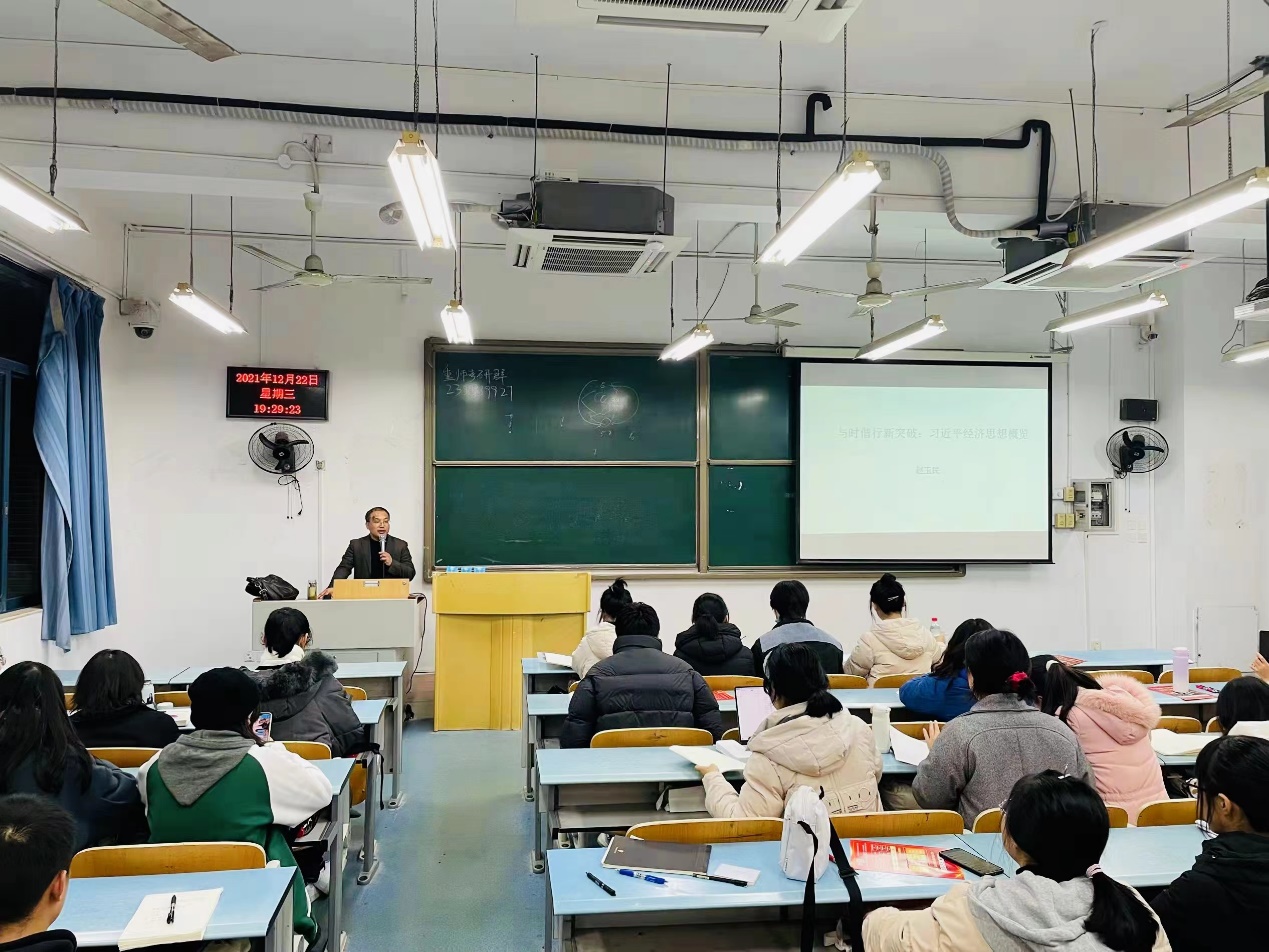2021年12月22日晚,赵玉民副教授主讲的《习近平新时代中国特色社会主义思想专题摘编》通选课第七期第十四讲开讲,各学院各年级150余名学生参加了本次课程学习。本次授课由本通选课课代表万莹莹主持。