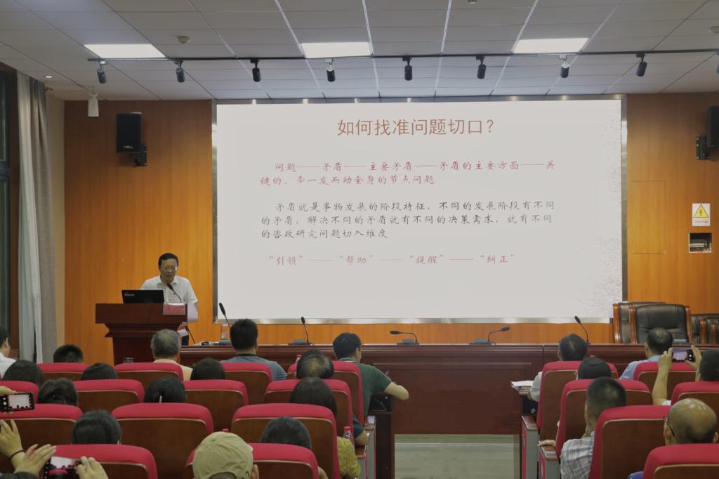 讲座开始前,科研处副处长马文斌教授讲话,他以习近平总书记重要指示精神为切入点,强调咨政研究在科学研究中的重要地位。同时,我校应充分发挥哲学社会科学科研平台的智库作用,积极为地方经济社会发展建言献策。