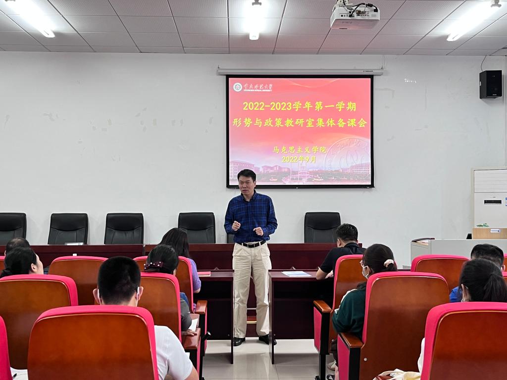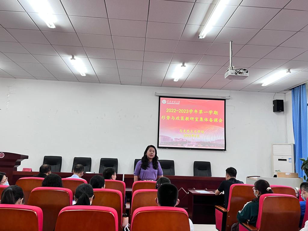 2022年9月22日,我校“形势与政策”集体备课会在汇贤楼2138cn太阳集团古天乐106会议室举行。此次集体备课会由我院形势与政策教研室负责人赵玉民副教授主持。我院党委书记李晓燕、副院长姜土生、副院长侯玲出席会议,形势与政策教研室全体任课教师参会。