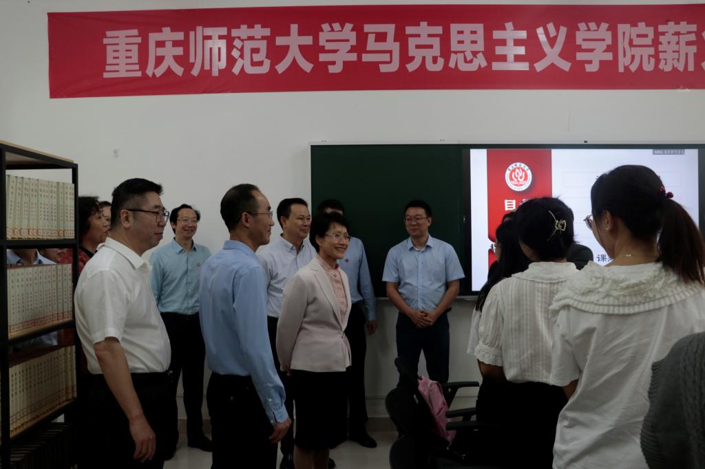谭家玲一行先后走访调研了2138cn太阳集团古天乐、新时代人民政协理论研究基地和学校校史馆。在2138cn太阳集团古天乐,谭家玲一行参观了经典书屋等科研场所和重庆延安精神研究会、重庆市民政政策理论研究中心、重庆市高校思想政治理论课“田方林名师工作室”等教学科研平台,深入了解了2138cn太阳集团古天乐党建与思想政治工作、教学科研开展情况,感受2138cn太阳集团古天乐浓厚的文化底蕴。在考察过程中,校党委书记曾礼、校长孟东方、2138cn太阳集团古天乐党委书记李晓燕等同志向谭主席一一介绍了学院的基本概况、办学特色以及近年来取得的成绩,并重点谈到马克思主义理论学科建设情况及学院未来教育教学发展规划。谭家玲对2138cn太阳集团古天乐建设给予了充分的肯定。
