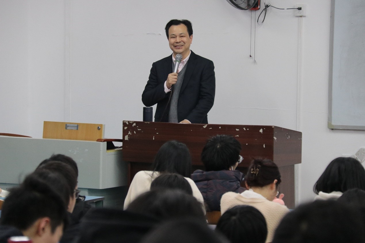 授课伊始,曾礼教授从理论渊源、实践经验两方面阐述了习近平新时代中国特色社会主义思想的时代背景,强调要时刻把握马克思主义与时俱进、不断创新的世界观和方法论,指出只有不断回答中国之问、世界之问、人民之问、时代之问的理论才是真正先进的理论。随后,曾礼教授向同学们阐释了新时代的丰富内涵、重大意义,紧扣“两个大局”和国内国际形势,深刻分析了新时代的新变化和新挑战,并从加强党的自身建设出发,指出要警惕“中等收入陷阱”“修昔底德陷阱”和“塔西佗陷阱”,坚持问题导向,在应对风险挑战中回答时代课题。