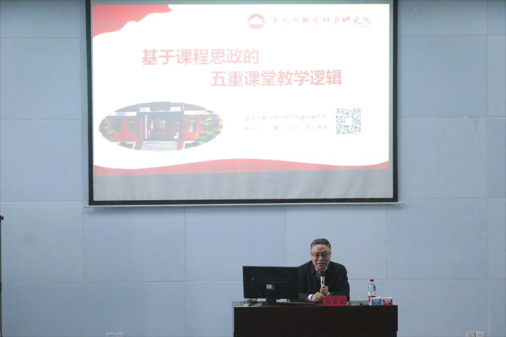 接着,杨所长对当前的课堂革命、课程育德心态及课程育德困境进行了分析。杨所长指出,目前课堂上存在教育与教学相割裂、德育和智育被分离的状况,课程育德功能被长期弱化和边缘化,当前课程育德面临认知迷惑、认知偏见等众多问题。