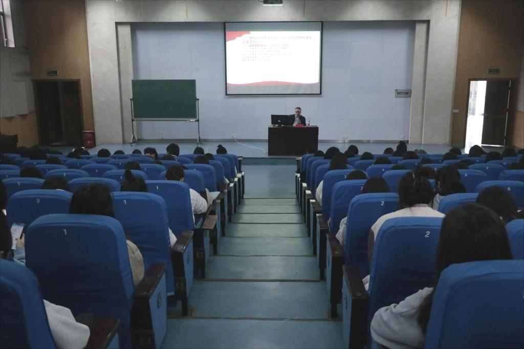 为助力马院学子全面理解课程思政,进一步增强其专业能力和素养,2023年3月16日16时,我院特邀重庆市教育科学研究院德育研究所副所长、重庆市首届市级科研骨干教师、中国教育学会班主任专业委员会理事、重庆市研学旅行协会副会长杨昌义于陈性初学术报告厅开展以“基于课程思政的五重课堂教学逻辑”为主题的学术讲座,我院副院长姜土生教授主持本次讲座并对杨副所长的到来表示热烈欢迎,2022级研究生、2021级本科生聆听了本次讲座。