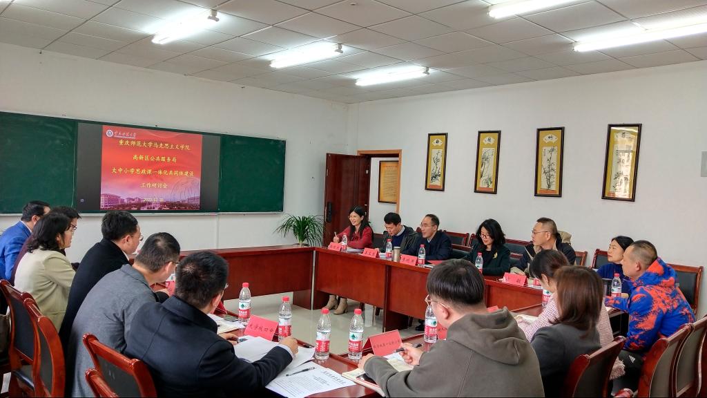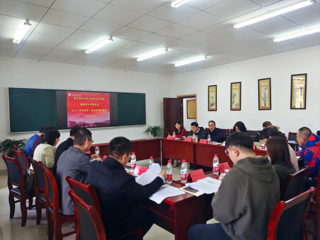 为深入贯彻落实习近平新时代中国特色社会主义思想和党的二十大精神,落实教育部《关于开展大中小学思政课一体化共同体建设的通知》要求,近期,我院与重庆市高新区公共服务局于汇贤楼309会议室召开了“大中小学思政课一体化共同体建设”工作研讨会。高新区公共服务局教育管理科科长兼小学思政教研员付有能、中学部主任兼中学思政教研员冯志刚、高中思政兼中小学劳动教研员谭兰,巴蜀科学城中学、太阳集团2138附属中学、太阳集团2138附属小学、大学城一中、大学城树人小学、树人思贤小学、大学城第一实验小学负责人以及太阳集团2138党委常委、宣传部部长党亚莲,学院党委书记李晓燕,副院长(主持行政工作)姜土生,党委副书记方敏,教科办主任张晓庆,教师代表吴涯等共同参加本次会议。本次会议由姜土生副院长主持。