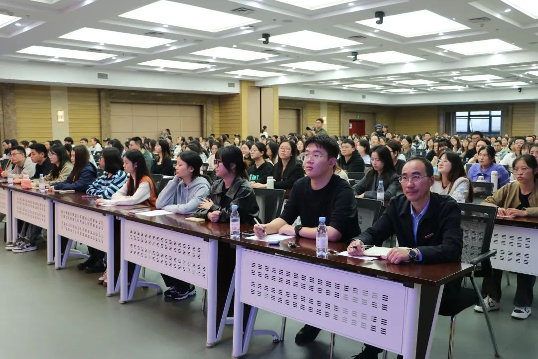 研究生新生代表刘言说道,当代大学生应脚踏实地、知行合一,向内探求找准定位,要坚定不移地听党话、感党恩、跟党走,做有理想、敢担当、能吃苦、肯奋斗的新时代好青年,为推动中国式现代化贡献智慧和力量。
