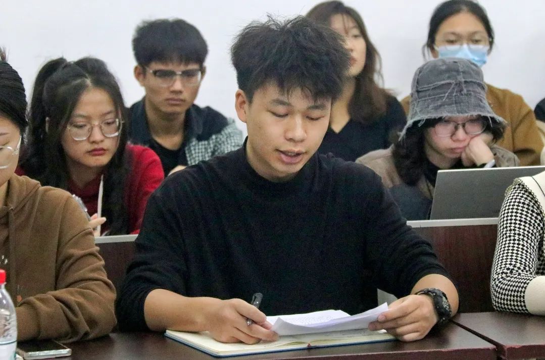 学生负责人柴星宇围绕此次暑期“三下乡”社会实践的形式和内容展开汇报,他表示此次实践活动坚持用红色革命文化培根铸魂,着力打造了“院坝里的思政课”品牌,将带有我院特色的理论宣讲做深做实,最终取得显著的宣传成效,并形成高质量调研报告;学生负责人董江鑫则从实践理念、党史学习教育、活动形式、团队成果四个方面入手,详细汇报了暑期实践活动工作的开展情况,亮出了其推进过程中的闪光点,极大发扬了独属于我院人的特色优势。