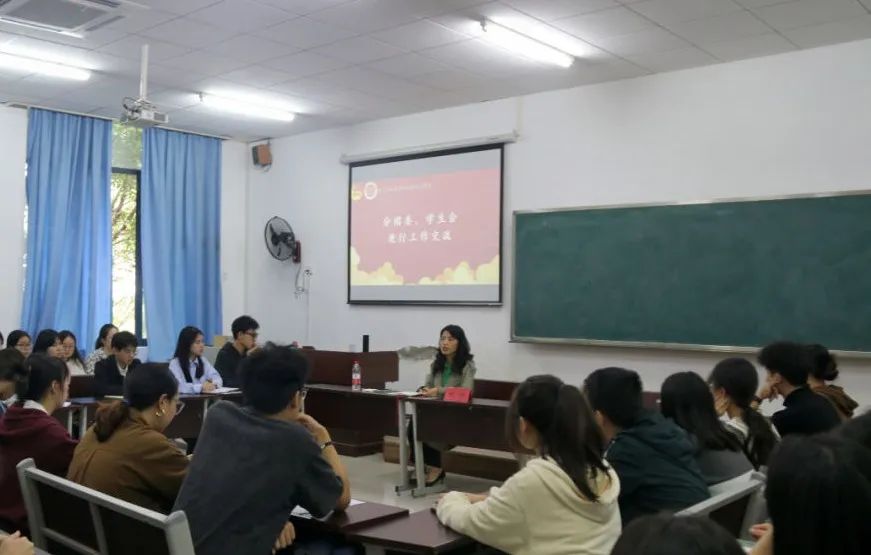 会议第四项议程,刘洪老师组织院分团委、学生会进行工作交流。