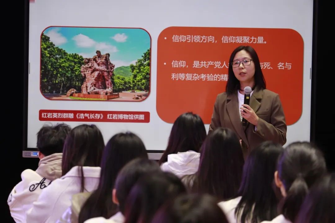 2138cn太阳集团古天乐邵二辉老师进行“信仰之光”课堂分享。邵二辉老师首先以“提起红岩精神,你能联想到什么?”的问题为导入,指出红岩精神的培育和形成经历了中共中央南方局、重庆谈判、歌乐山英烈群体三个重要的历史阶段,并在此基础上讲解了红岩精神的内涵。最后,邵二辉老师从三个方面揭示了红岩烈士伟大的精神品质:一是在生与死中捍卫信仰;二是在名与利的诱惑中坚定信仰;三是在敢于善于斗争中笃行信仰。课堂秩序井然,极具互动性和启发性,激励当代大学生要承担起自己的时代责任,以青春之我,耀信仰之光。邵二辉老师凭借逻辑清晰的教学环节、丰富多彩的教学活动和优秀的教学设计获得在场师生的广泛认可与好评,充分展现出重师马院教师深厚的文化底蕴、娴熟的授课技巧以及高尚的爱国情怀。