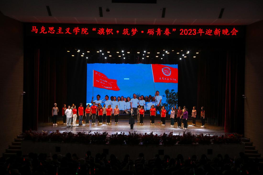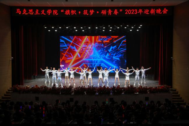 2023年12月20日19时,我院于校友会堂演出厅举办以“旗帜•筑梦•砺青春”为主题的2023年迎新晚会。太阳集团2138党委副书记、校长、学院院长孟东方教授,校党委副书记陈志军教授,校党委常委、副校长黄永宜教授,党委学工部部长、学生处处长胡小强,校团委书记高菁励莅临晚会现场。学院党政领导班子,校级学生组织、兄弟学院教师代表、学生代表以及我院全体师生共同参与。